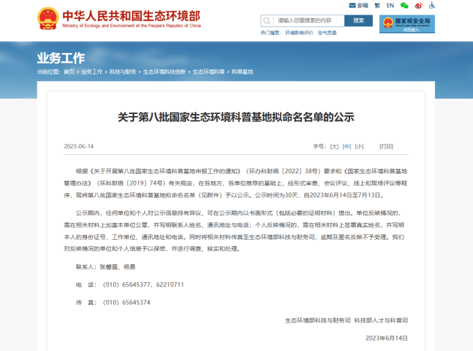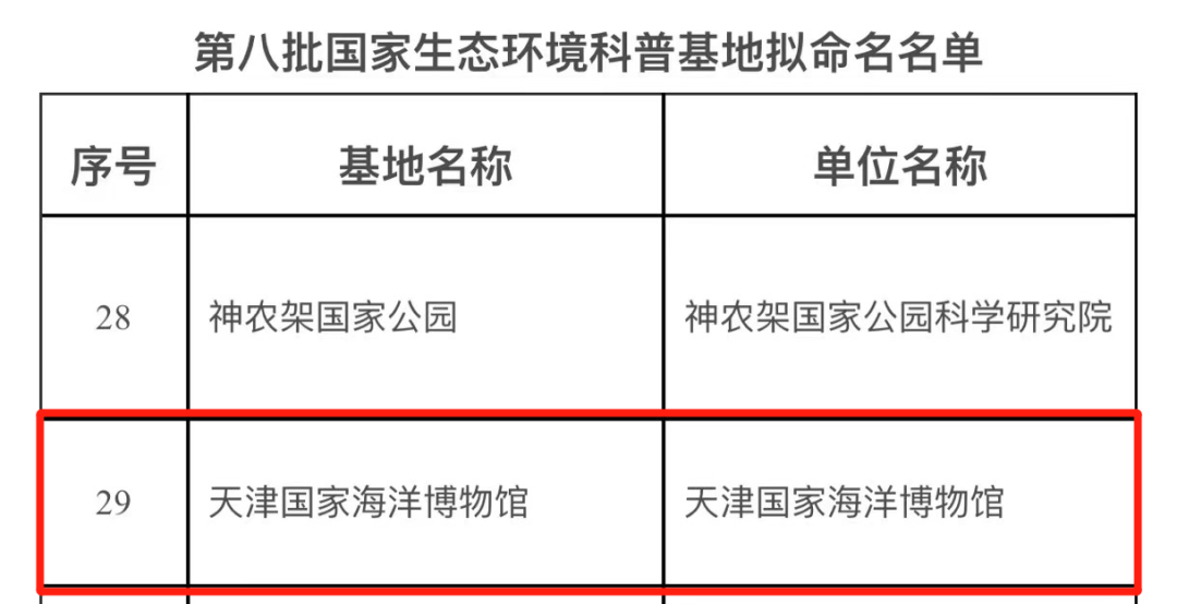 国家生态环境部和科技部近日联合公布第八批全国生态环境科普基地名单,国家海洋博物馆入选。