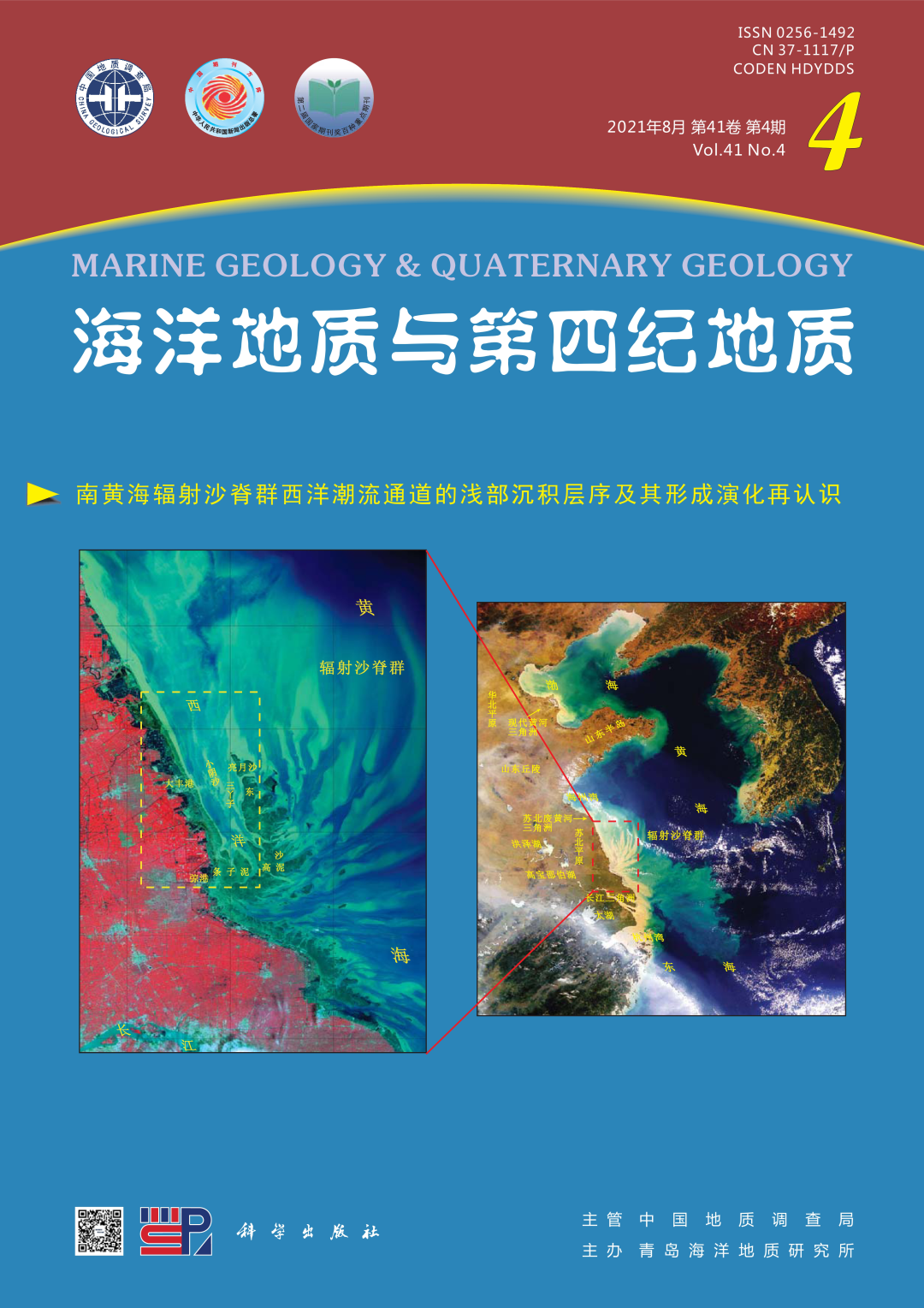 2 a) v. o" M& p3 B' z4 e8 O 《海洋地质与第四纪地质》(双月刊)创刊于1981年9月,由中国地质调查局青岛海洋地质研究所主办、科学出版社出版。主要刊登海洋地质学及海陆第四纪地质学及各分支学科、边缘学科的具有前沿性、创新性和探索性的学术论文;侧重报道国家自然科学基金项目、国家重点项目以及国际合作项目的最新研究成果;突出中国海区、大洋地质和“三极”地区研究报道特色;注重海区与大陆、区域性与全球变化对比研究。主要栏目为:沉积与环境、地球化学与地球物理、古海洋与年代地质、油气与矿产、第四纪地质、综述与评述、技术方法、等。编委会主任为朱日祥院士,主编为吴能友研究员。