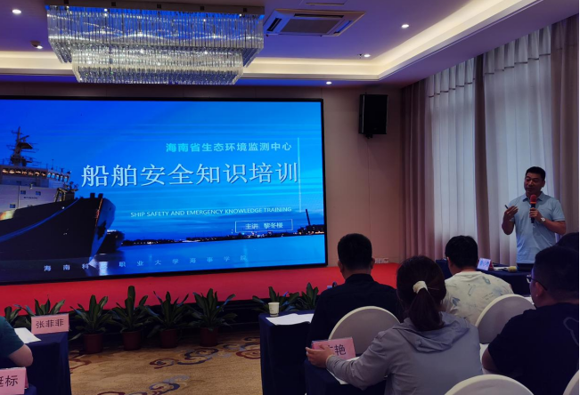 为顺利实施和完成第三次海洋污染基线调查海南省海湾精细化调查任务,提升海上作业人员安全意识,增强海上安全作业应急处置能力,3月18-19日,海南省生态环境监测中心举办第三次海洋污染基线调查海南省海湾精细化调查监测技术集中培训班。海南省生态环境厅海洋处赵媛副处长发表了动员讲话,海南省生态环境监测中心林积泉副主任对培训班的举办做出具体要求,各市县站技术人员共计30余人参加培训。 ) v5 U# c8 ~1 X