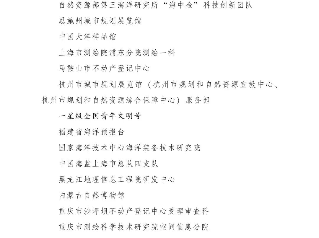 ) T6 f$ z z7 ]) v% Z2 X- d) o6 Z( H 近日,共青团中央、最高人民法院、国家发展改革委、工业和信息化部、公安部、司法部、自然资源部、住房城乡建设部、交通运输部、水利部、商务部、文化和旅游部、国家卫生健康委、应急管理部、国务院国资委、海关总署、税务总局、市场监管总局、广电总局、金融监管总局、全国工商联、全国供销合作总社、国铁集团等23家全国创建青年文明号活动组委会成员单位联合印发《关于命名第21届全国青年文明号并进行星级认定的决定》,命名1932个集体为“第21届全国青年文明号”,其中709个集体为“二星级全国青年文明号”。北海局所属的天津海洋中心污染监测站、北海海洋技术中心调查技术室继荣获“第20届全国青年文明号”称号后,在第21届全国青年文明号评选中再次被命名,成为首批“二星级全国青年文明号”。 ! _8 i) R: a" |5 n& H: g2 E