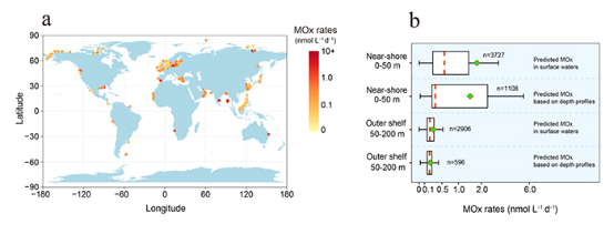 图1 全球浅水区甲烷氧化速率的分布及预测