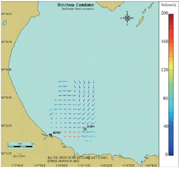 图2 高频地波雷达数据流场图 ; p, F' t% P4 |& `* E0 g( w