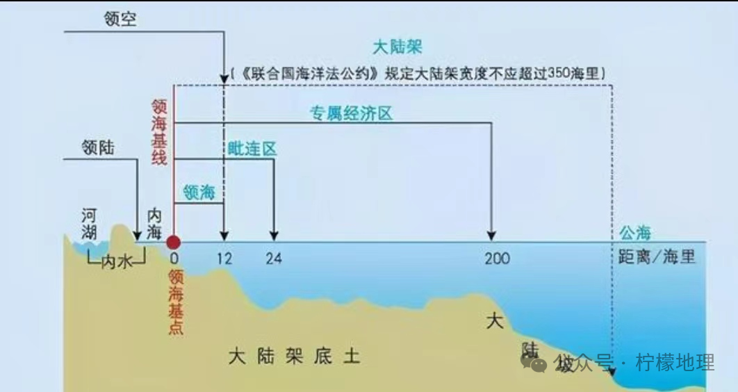 •包括该国管辖的内水和领海、专属经济区和大陆架,是内水、领海、毗连区、专属经济区、大陆架等所有管辖海域的总称