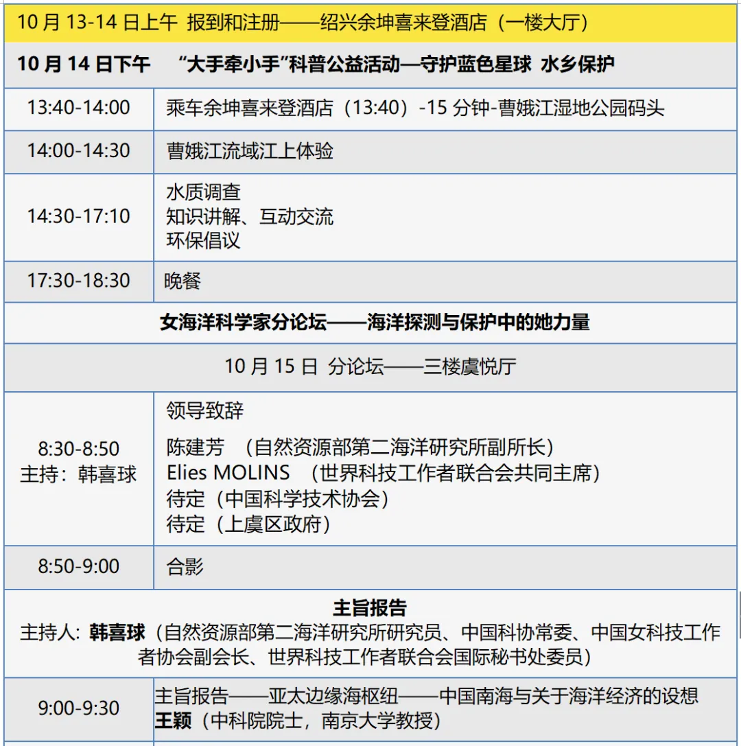 The Special Committee for Women in Science and Technology of China Association for Science and Technology is committed to building a platform for the growth and development of women in science and technology. In order to give full play to the role of women scientists in building a strong maritime power, the Second Institute of Oceanography, the Ocean College of Zhejiang University, China Women Scientists Association and the Peoples Government of Shaoxing Municipality are jointly organizing the "Women Marine Scientists Forum: SHE Power in Ocean Survey and Protection" in Shaoxing on October 14th -15th, 2023, as a parallel forum of the first World Conference on Women Scientists.
