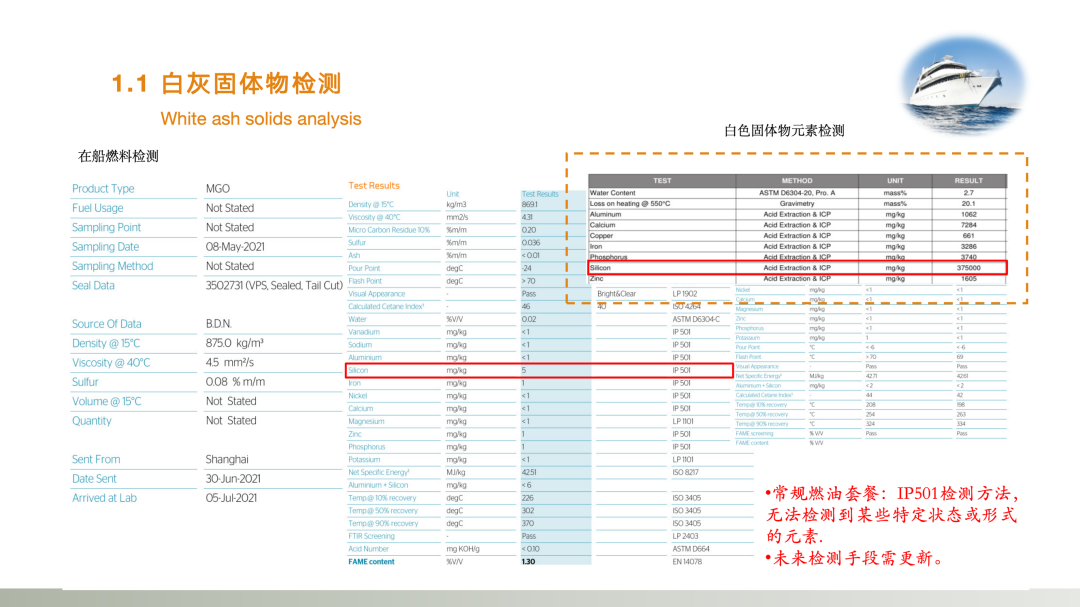 检测中,应注意到“一般燃油中的石油酸不会造成太大影响,但有时会出现炼化过程中产生的微量强酸”。但“燃油中不应该有无机酸,即使其含量不超标“。
