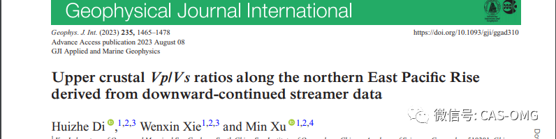 : y5 m [ q! _ ~% I/ ~/ W 相关论文信息:Di, H., Xie, W., & Xu, M*. Upper crustal Vp/Vs ratios along the northern East Pacific Rise derived from downward-continued streamer data. Geophysical Journal International, 2023, 235(2): 1465-1478. c# G1 Y- \* W' I( g# o7 d. J