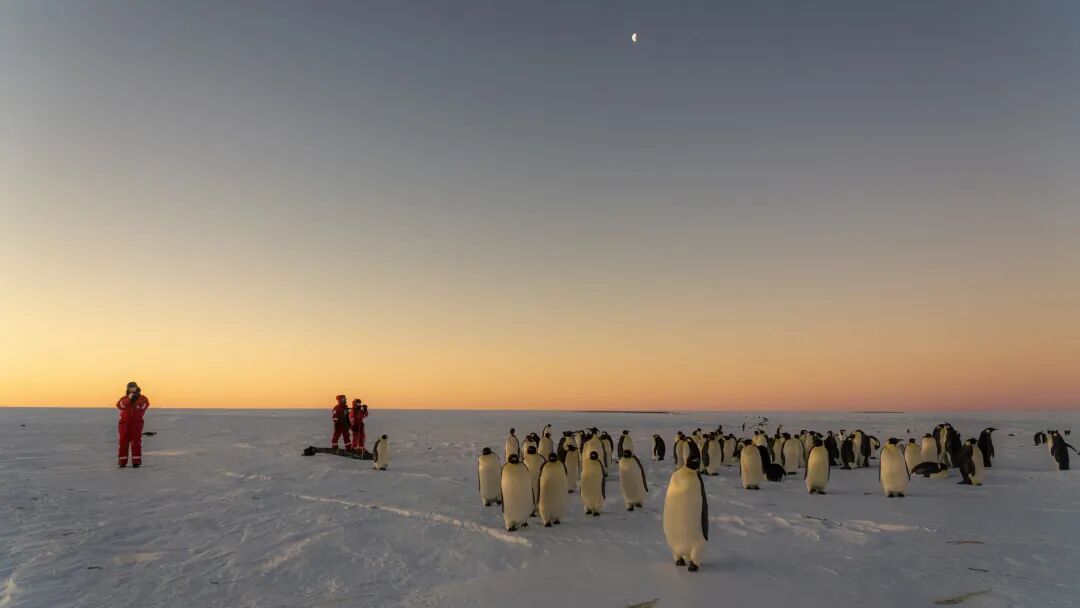 ) k! i* M' X8 u% J- g9 ?0 s 科学家在南极洲近距离研究帝企鹅种群