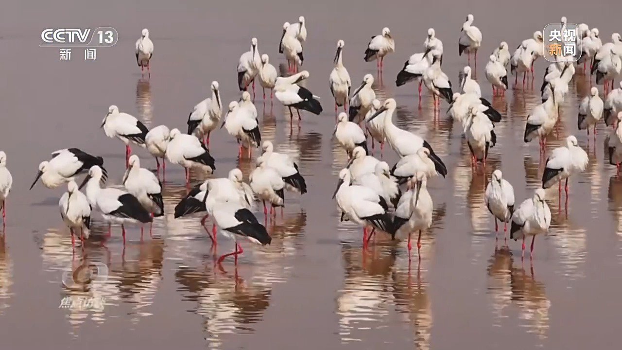 ' g: R2 U8 A* y7 G( O5 m7 n2 R6 u/ Y 曾经的“绿色沙漠”如今焕发出了勃勃生机。每年的2月到7月,大量候鸟在此繁殖,这里的工作人员还会每天都通过监控,密切关注这些湿地精灵的动态。