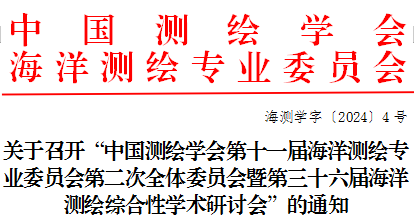 中国测绘学会海洋测绘专业委员会定于8月19日至21日在贵州省遵义市召开“中国测绘学会第十一届海洋测绘专业委员会第二次全体委员会议暨第三十六届海洋测绘综合性学术研讨会”,为做好相关准备工作,现将有关事宜通知如下: