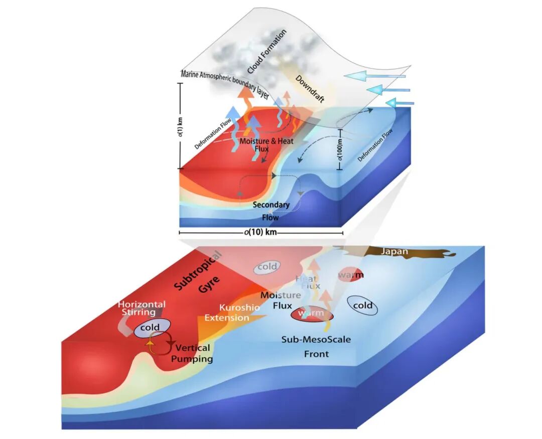 近日,物理海洋教育部重点实验室陈朝晖教授领衔的科研团队在Geophysical Research Letters期刊发表题为 “Observations Reveal Intense Air-Sea Exchanges Over Submesoscale Ocean Front”(《观测证明海洋亚中尺度锋面上空强烈的海洋-大气交换》)的最新研究成果,描述了海-气界面交换、大气运动以及边界层高度对海洋亚中尺度锋面的响应特征,并揭示控制这些现象的动力学机理。该成果由实验室杨海源副教授为第一作者、陈朝晖教授与崂山实验室孙善同教授为通讯作者的研究团队完成。 3 b j V3 ^2 e: _2 X) E0 O