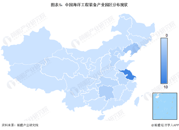 我国海洋工程装备产业园区主要分布在长三角一代,其中江苏省海洋工程装备产业园分布数量远超其他省份,产业集聚趋势明显。