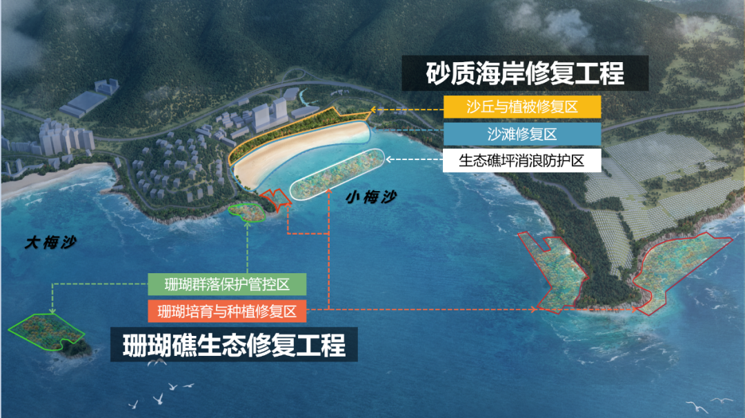 茂名市海洋生态保护修复工程项目将在博贺湾、水东湾及放鸡岛开展包括岸线整治修复、红树林营造修复、珊瑚礁修复、沿海防护林建设等工程,预计生态修复总面积达到约260公顷,助力生物多样性维护、海岸带防护、海洋固碳等生态功能提升,构筑复合立体的海岸带防灾减灾体系。