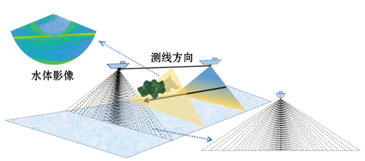 ! c' ~; z' }1 F. ] 图1 多波束水体数据成像机理 , Y1 W3 w1 i9 B& @6 q