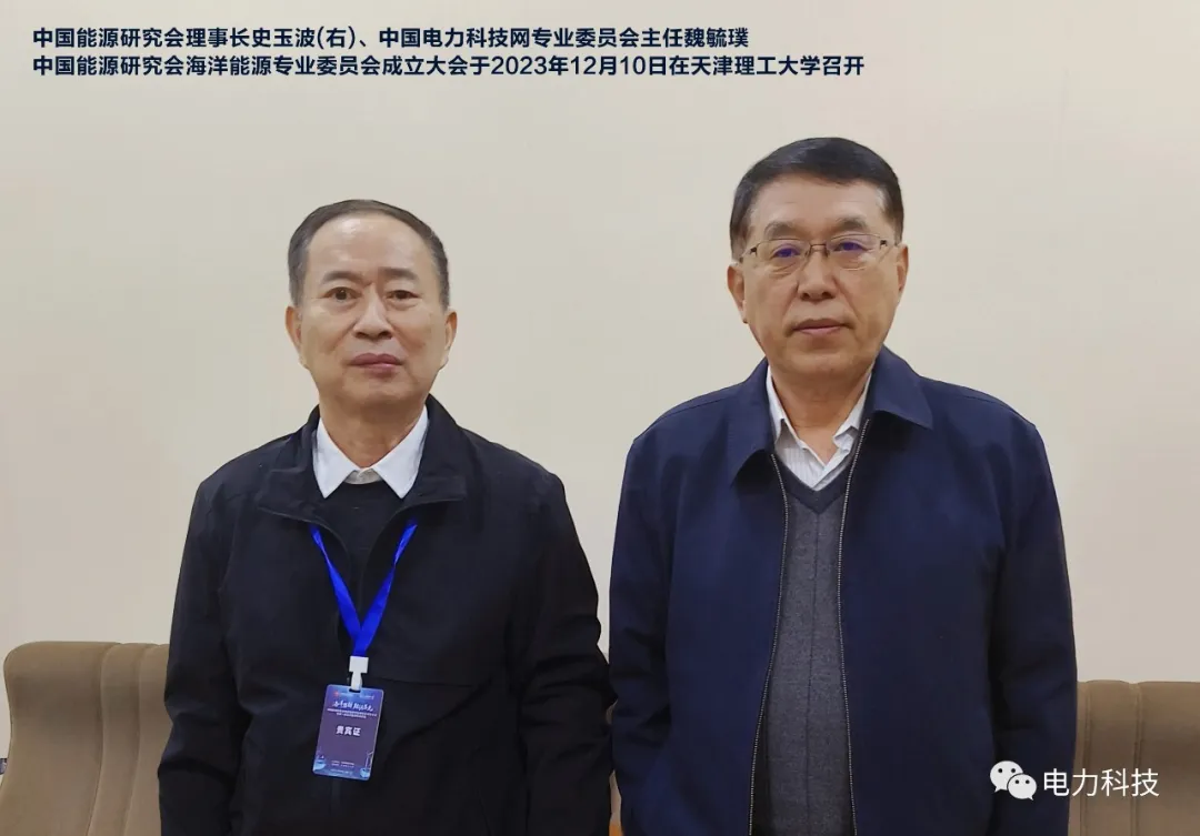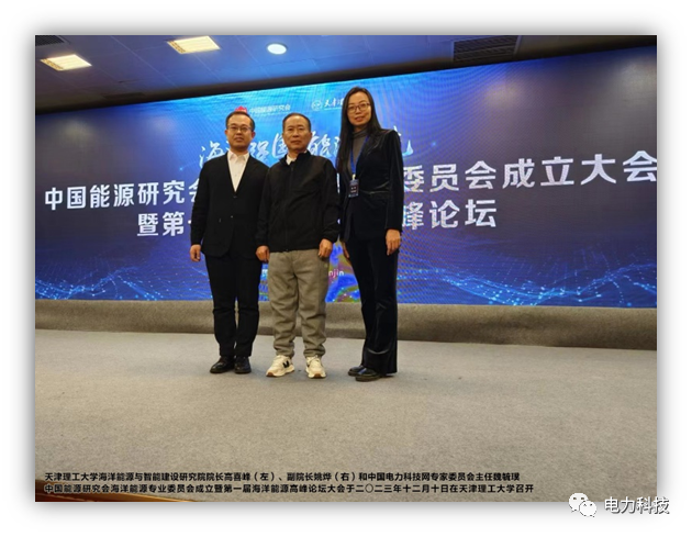 海洋强国,能源当先——2023年12月10日,“中国能源研究会海洋能源专委会成立大会暨第一届海洋能源高峰论坛”在天津理工大学召开,旨在打造卓越海洋能源学术交流平台,促进我国海洋能源技术发展。中国电力科技网专家委员会主任魏毓璞、杨豫、李萌萌应邀出席论坛。 $ E+ j. N' K0 _! N