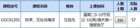 刚刚加入第三轮选课的《科学、文化与海洋》课程容量有限,想选课的小伙伴们得抓紧了,另该课程选课目前只针对本科生开放,但同样欢迎研究生同学们旁听。 2 r; a/ w5 m! H+ j& s