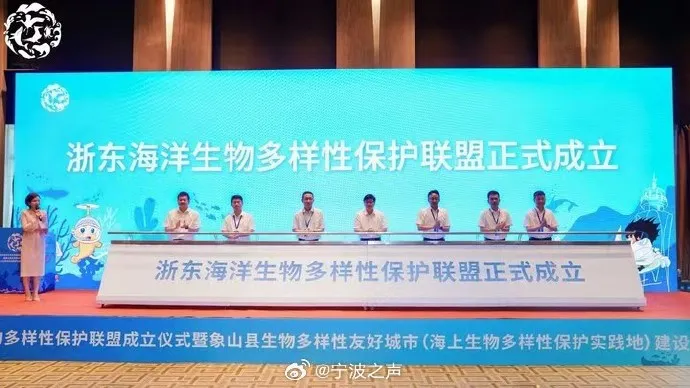 - d- D* c) j0 [ N% i 7月19日,浙东海洋生物多样性保护联盟成立仪式暨象山县生物多样性友好城市(海上生物多样性保护实践地)建设主题活动在我县举行,开启宁波、温州、台州和舟山四地携手守护同一片蓝的新篇章。