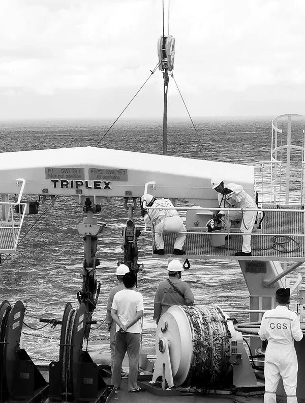 4 t, \6 j$ T3 s7 L “海洋地质九号”船的光缆系统是一套全新设备,尚未经历过深海的洗礼。 ) _0 i: C. ^$ Y" @/ N