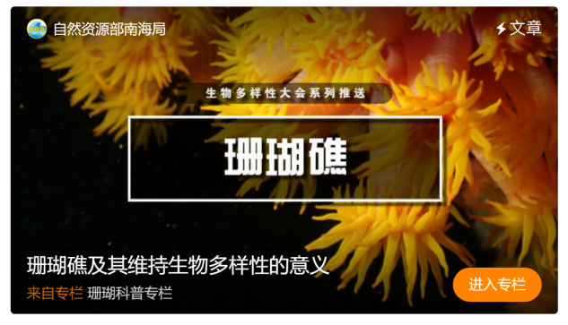 # T q' n: p( ^5 v 同年联合国生物多样性大会期间,南海生态中心技术人员发表了红树林、珊瑚礁、海草床、海藻场等多篇生态系统系列科普文章。