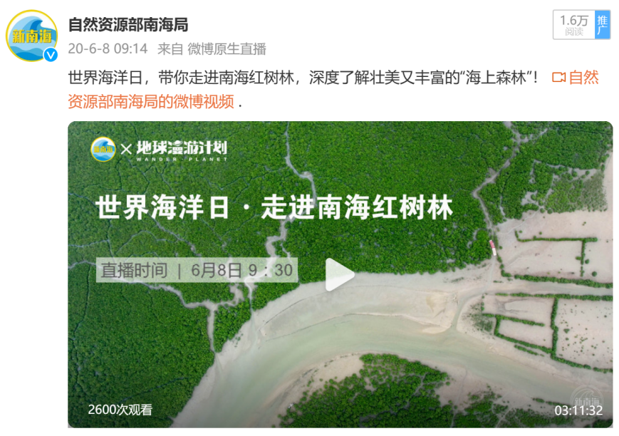 ' B# C. B. P$ K. P  世界海洋日红树林专题直播