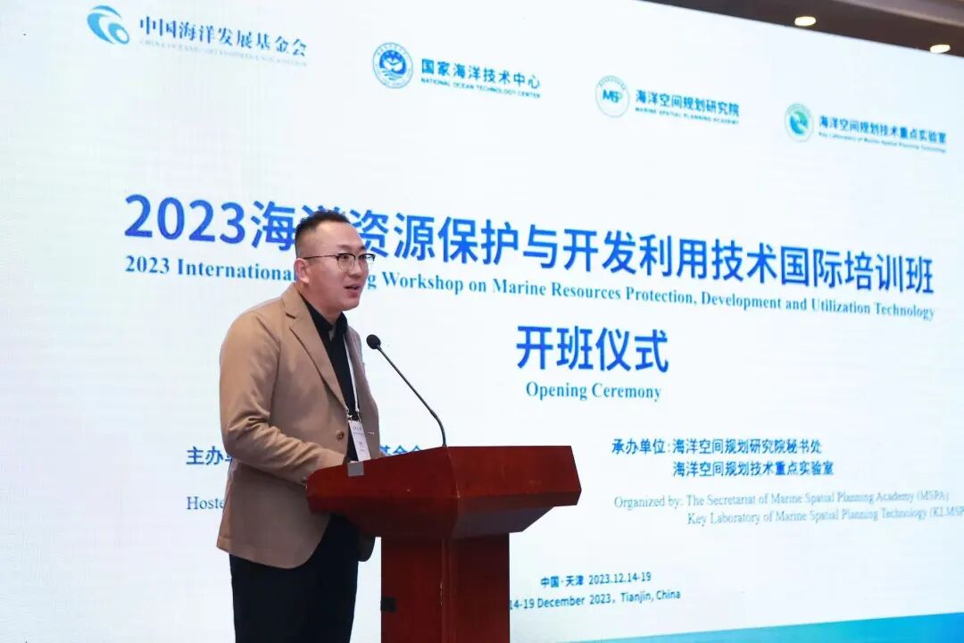 . e) p- o0 S& O& I: Y* I 2023年12月15日,由中国海洋发展基金会(以下简称海洋基金会)主办,海洋空间规划研究院秘书处(以下简称秘书处)和海洋空间规划技术重点实验室(以下简称实验室)共同承办的2023海洋资源保护与开发利用技术国际培训班在天津举办。