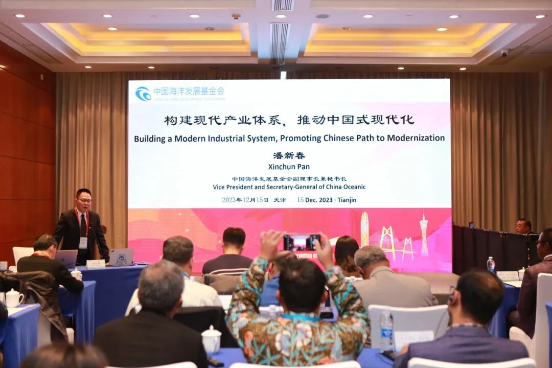 . N6 T. f0 Q$ ?# e* T- t 随后,潘新春以“构建现代产业体系,推动中国式现代化”为题,为培训班学员讲授第一课。他表示,中国现代化产业体系取得长足进步,重点围绕产业结构优化、产业升级、产业形成集群、产业链延伸、产业生态环境营造,推动中国现代化产业体系建设,建立了完备的工业体系门类,形成了三个经济发展中心圈,形成了诸多高新产业集群。他指出,中国的高新产业产品,如新能源产品、无人机产品、5G产品、高端船舶、高铁技术、第四次工业革命的5大技术,正走向全世界前列。接着,他介绍了中国海洋产业正走向现代化,三大海洋产业集群崛起,海洋新兴产业快速发展,海洋传统产业不断升级,现代海洋服务业蓬勃发展,海洋数字经济迅速兴起。最后,他强调,海洋基金会愿助力发展中国家的海洋资源开发利用与海洋生态环境保护相协调与统一,促进当地蓝色经济快速发展和海洋可持续发展。讲座引起了学员们的浓厚兴趣与热烈响应,学员们积极交流互动,受益匪浅,对学员回国后的学习工作具有很强的指导意义。 1 k: o5 U& ]2 x, x2 f
