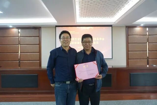 ! T) M' ?; P. p- l 花存宏秘书长为奚民伟高工颁发副主任委员聘任证书