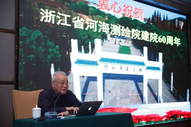 , ^, p9 b4 ], y. J7 B8 v 今年适值浙江省河海测绘院建院六十周年,本着精简节约的原则,在学术报告会前还举行了一次简短的纪念活动,通过VCR简要介绍了浙江省河海测绘院六十年砥砺前行的风雨历程和近十年来的快速发展,并通过展板形式展示了近年来科技成果和典型技术应用情况。浙江省水利河口研究院院长叶永棋、浙江省测绘与地理信息行业协会会长吴红伟分别代表测绘行业协会和上级单位致辞,祝贺测绘院建院60周年,祝愿测绘院在新的起点上和新的征程中取得更辉煌的成绩。武汉大学测绘学院还在纪念活动上向浙江省河海测绘院授发了“武汉大学测绘学院博士科研工作站”、“武汉大学测绘学院教学实践基地”牌匾,由宁津生院士、叶永棋院长共同揭牌,标志着双方开展产研结合,落实战略合作协作等进入实质性阶段。测绘院院长陆列寰代表单位致辞,测绘院院党总支书记胡国建主持了纪念活动。 , z3 F8 v: I' s+ ^) B) s