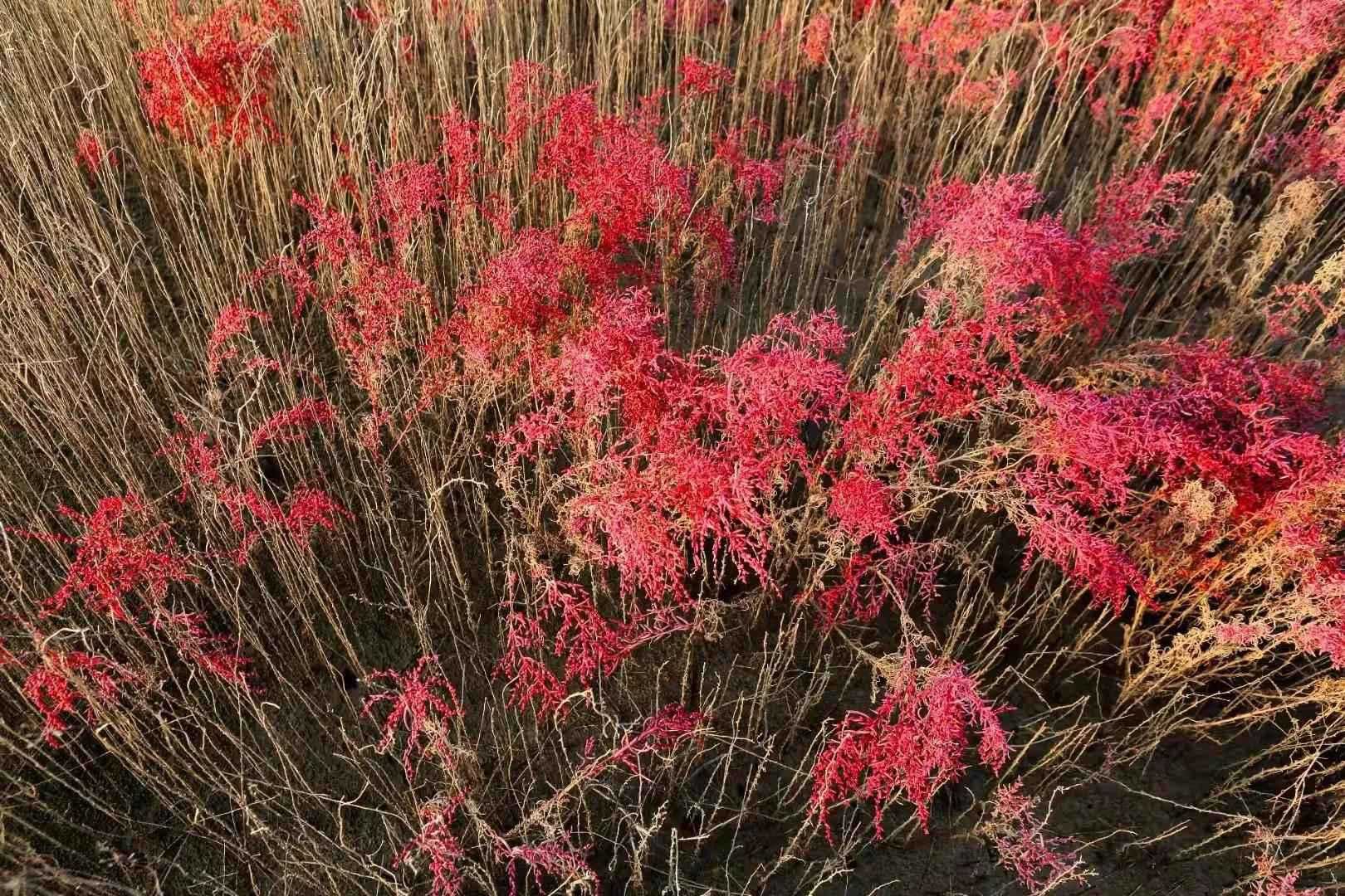 ( u- }, S7 n/ {) B' H, V柽柳每年5月开始抽生新的花序,在长达5个月的花期间,区内一片花海,老花凋谢,新花又开,三起三落,风景别致。+ U! ], y* I$ ?# R4 q% E/ ]' w
