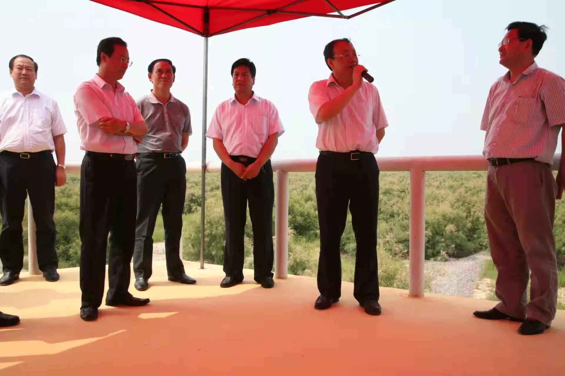 2009年7月24日山东昌邑国家级柽柳林海洋生态特别保护区新架设的主席台彩旗飘扬。国家海洋局副局长王飞,环境保护司副司长王斌,法规司副巡视员魏国旗等领导,沿海省市海洋与渔业厅(局)分管厅(局)长,全国国家级海洋自然保护区和国家级海洋特别保护区管理机构的有关领导及专家出席现场会。