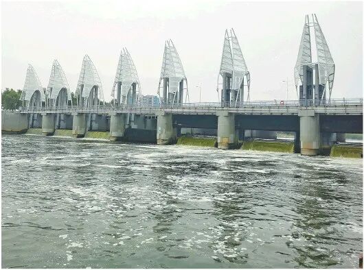 流量和水位稳定之后,洪园闸的卢居法接到调度指令,下午1点开始逐步关闭七孔大小闸门,恢复正常景观水位。 风雨24小时后,重归于平静。
