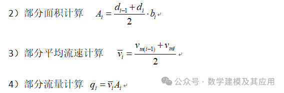" H/ Z8 r& c3 C, O5 ], f  由于河水流速与水深、离岸距离函数式不易确定,实际测量时采用多线多点测水深和流速,再按如下方法进行计算断面流量: