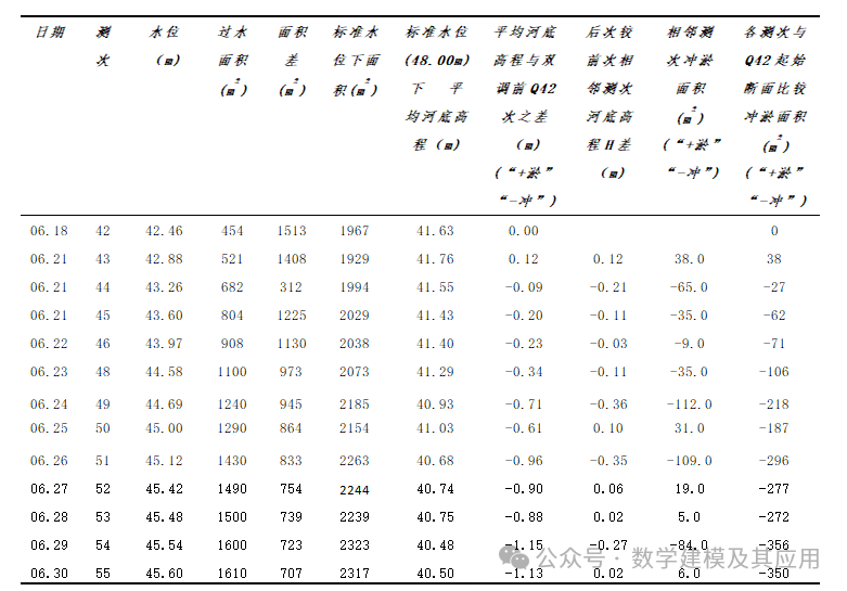 : m. m" }$ j4 O; g# U$ |8 ? 与洪水前实测流量断面进行了比较分析,从比较的结果来看,截止6月30日,主槽冲刷明显;与6月18日洪水前标准水位下平均河底高程冲刷1.13m,面积淤积冲刷350,具体数据见下表。