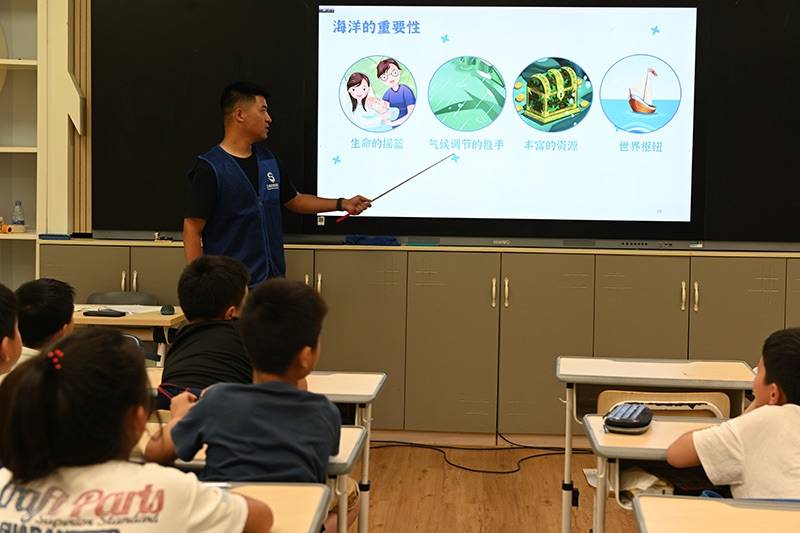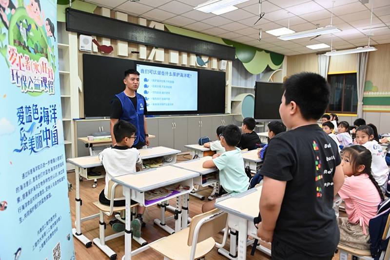 活动所使用的课件《爱蓝色海洋绘美丽中国》由市海洋局设计制作,通过“青春沪水人”青年志愿宣讲团将“水务海洋公益课程”送入全市11个区,300多个爱心暑托班办班点,鼓励青少年们珍惜海洋资源,积极参与海洋保护行动。 ) `! E- y! }8 d/ h