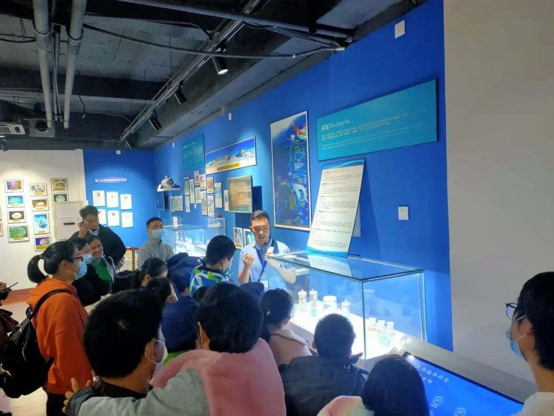 5 X, K, F9 v1 v# q/ e* q! d 此外,AB两组小记者先后跟随着讲解员,参观了综合展区、海洋地质展区、海洋生物展区、水声信息与通信展区、观海弄潮展区里的展品知识。小记者们都聚精会神地听讲,积极发言提问,发挥了自己的好奇心和探索力。在博物馆举办的海洋科学知识竞赛活动中,小记者们争先恐后积极抢答,几名佼佼者脱颖而出,他们将有机会进入下一轮海洋知识竞赛的复赛比拼,并获得由厦大学生原创的海洋元素文创产品。  1 l% {* z1 }3 H; Z, G; p& Q