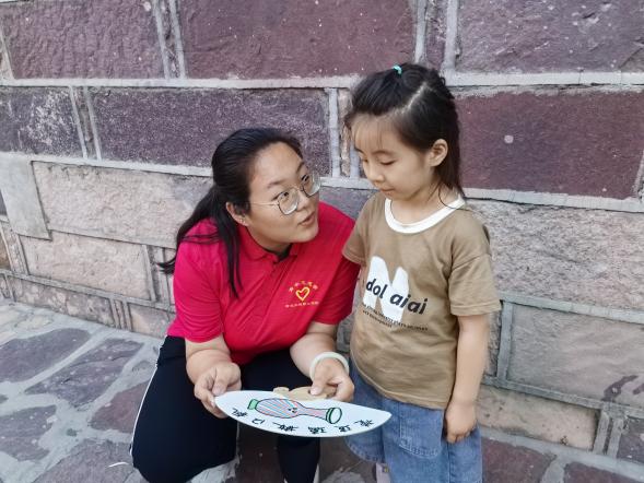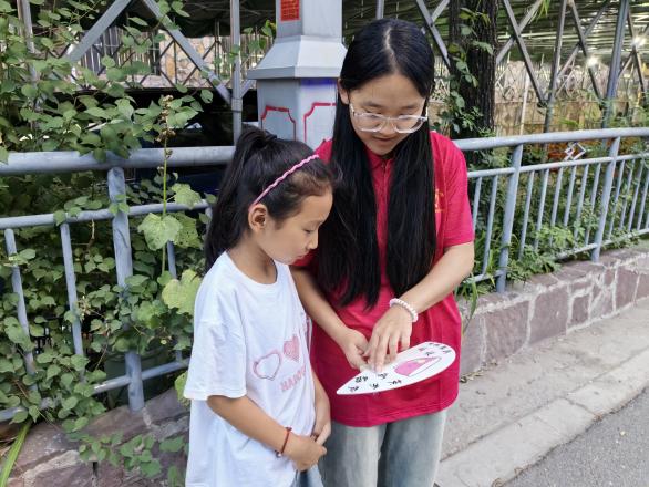 * m" J# ^1 K2 |" I( \! N- _ 活动期间,志愿者们将文物宣传与中华美学相结合,通过画笔在传统工艺品“团扇”“麻布包”上对文物进行绘画创作,绘画过程中表达了自己对文物的理解和感悟,以精美的设计和优雅的色彩搭配,赋予了文物新的生命力。志愿者将制作完成的绘画作品赠送给当地居民和儿童,并对文物进行了细致的讲解,为中华文物的推荐普及和传承保护贡献力量。 0 M1 n3 M# h# T9 l! P6 J/ e