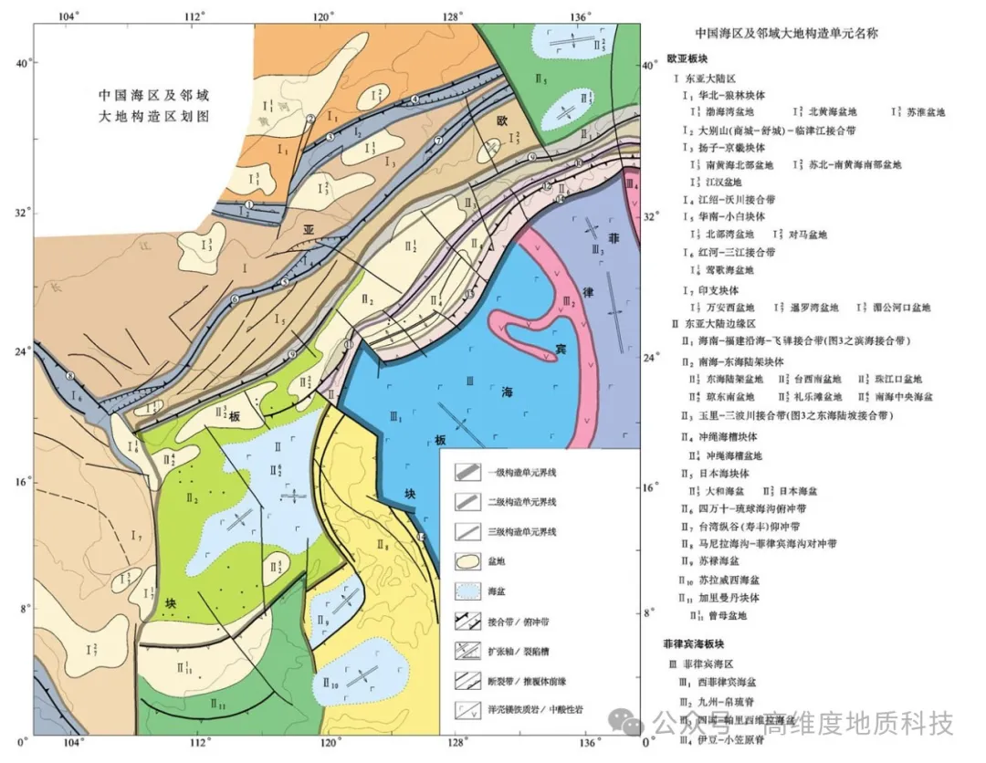 ; L4 z+ ~7 C& |7 {9 V+ ? 图1 中国海区及邻域地质图 (二)海洋地质构造1.板块构造与海洋地质(参见本公众号“中国地质与板块运动”等相关文章)中国海域位于多个板块的交界处,包括欧亚大陆板块、太平洋板块和印度洋板块等。这些板块的运动和相互作用对中国海洋地质构造产生了深远影响。板块的运动导致了海底地形的变化,形成了多种类型的海底地貌,如洋中脊、海山、海沟等。2.洋中脊与海底扩张(参见本公众号“世界地质”等文章)中国海域内的洋中脊主要分布在南海海域,这些洋中脊是海底扩张的直接证据。洋中脊是海底的火山活动带,由一系列海底火山和火山岩组成,其形成与板块的运动和海底扩张密切相关。3.边缘海与大陆架中国拥有多个边缘海,如渤海、黄海、东海和南海等。这些边缘海的地质特征各异,但都与大陆的地质构造密切相关。大陆架是大陆向海洋的自然延伸,其地质特征受大陆地质构造和海洋地质作用的共同影响。中国海域的大陆架面积广阔,蕴藏着丰富的资源。