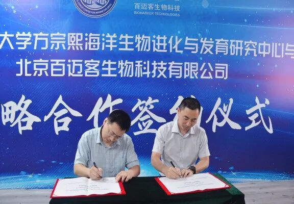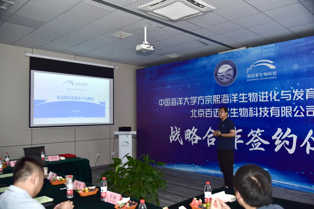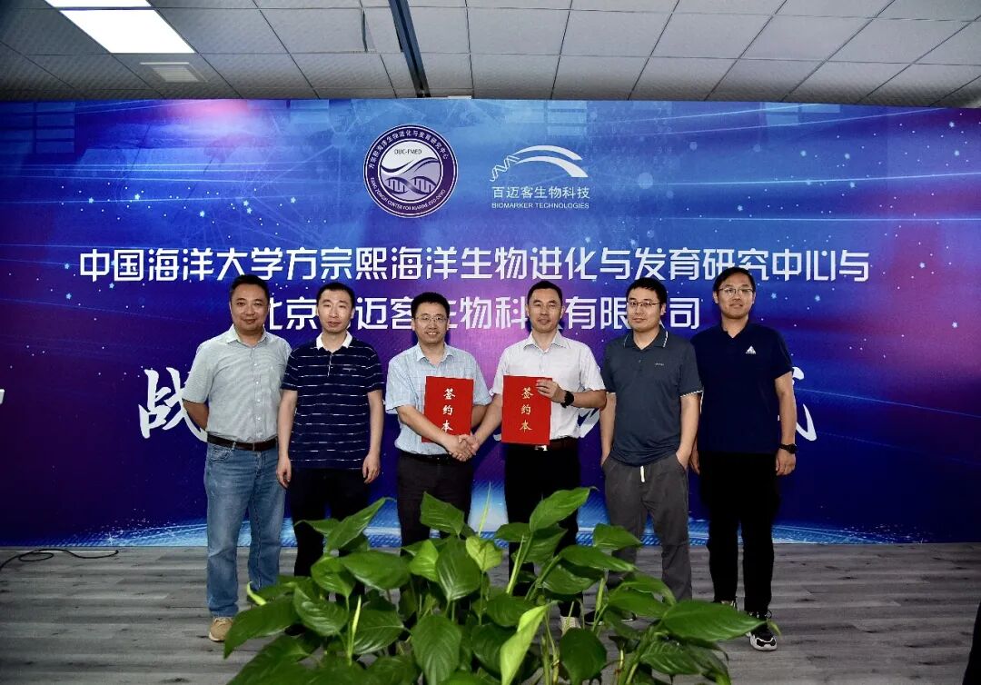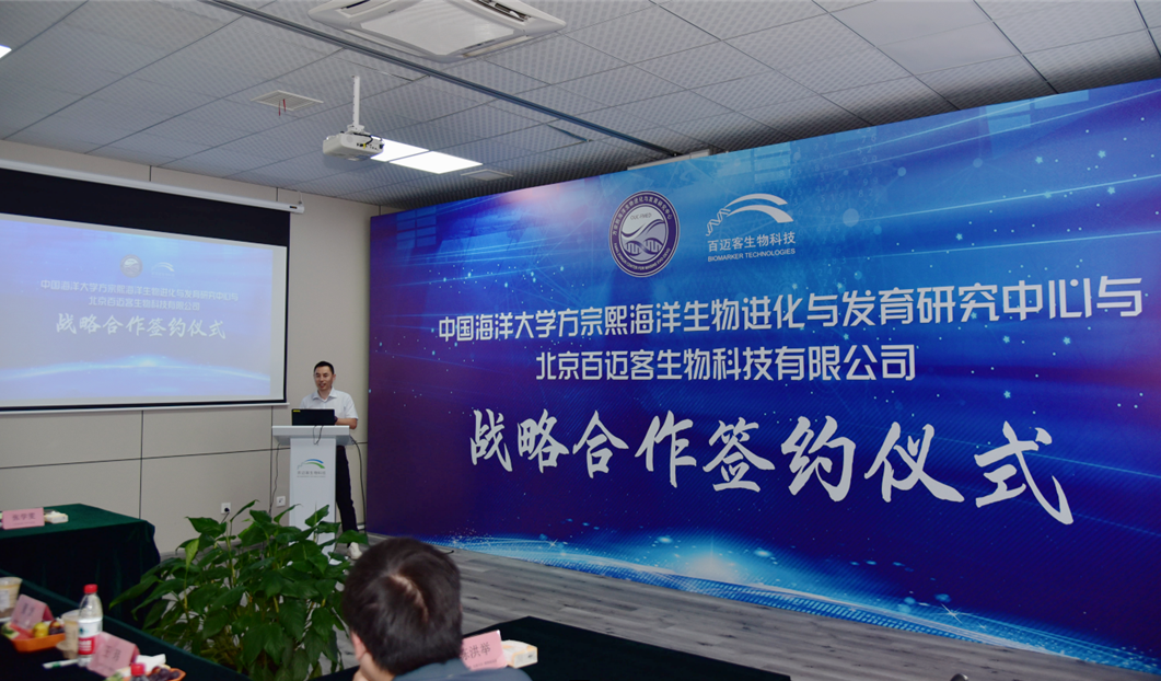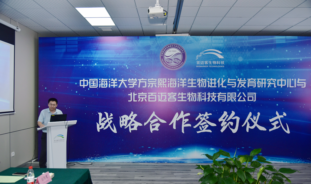 ! @% X) l% i- ^; k; K6 C 2023年7月25日,为加强中国海洋大学方宗熙海洋生物进化与发育研究中心(简称方宗熙中心)与北京百迈客生物科技有限公司(简称百迈客)学术交流与科研服务合作,更好地进行优势互补,进而加速科研成果产出与转化;北京百迈客邀请了中国海洋大学相关业内著名专家学者就时空学习平台共建、联合研发与测试及相关科研服务合作模式进行高层会晤及深入洽谈,进一步确立方宗熙中心与百迈客长期战略合作伙伴关系。