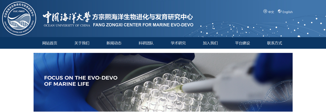 $ {4 n6 J. t t' q. e 中国海洋大学方宗熙海洋生物进化与发育研究中心(以下简称中心),立足国家发展海洋战略需求和海洋进化发育学术前沿,致力于开展世界一流的海洋进化发育生物学研究,发展海洋前沿技术,强化研究领域交叉,突出基础研究特色,促进新兴学科发展,创新科研管理体制,形成海洋科技创新高地和人才培养汇聚中心,提升学校在全球海洋进化发育领域的国际影响力和话语权;近年来研究中心在海洋生物遗传、发育、神经和进化领域的研究,工作取得了突破性的成绩,研究成果发表在Nature Methods、Nature Ecology & Evolution、PNAS、Nature Communications,Nature Cell Biology等国际权威期刊。