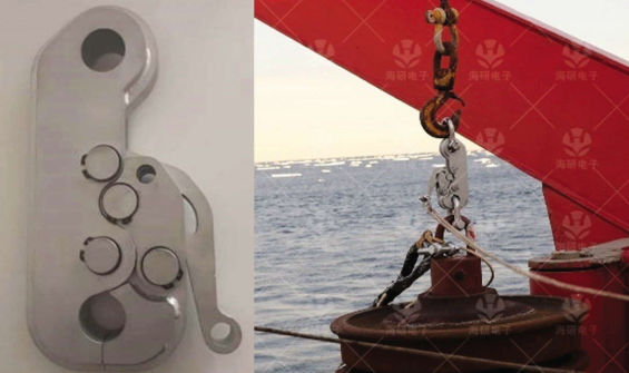 , K% j3 h/ p9 B& B3 D6 o5 B, T8 V 大洋科考过程中,受极端海况影响,船舶在涌浪影响下经常出现较大的升沉幅度,同时伴随横纵摇运动,这对海上工作带来一定挑战。海上吊装布放的科考仪器普遍在200~600kg,采用船载折臂吊开展吊装作业,利用释放器完成布放工作。主要工作流程包括:淤布放前将顶部吊钩与折臂吊的吊钩用U型环连接,手动旋出触发保险螺钉;于通过无线控制器启动电源,电磁吸附装置产生不低于50N的吸附力;盂将设备吊至水面以上1~2m处(视海况情况),触发无线控制器按钮,打开杠杆限位,完成释放动作。