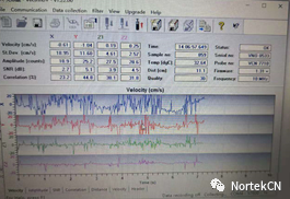 如何判断数据质量 在调整和改善流速数据质量之前,先要对流速数据质量进行判断。数据质量的判断首先根据三维流速本身的稳定性,因为大多数水槽在造流或者造波时流速变化存在一定规律,如果流速曲线平滑、大小符合实验水况,可认为流速数据质量较好。如果在水体流动没有规律的情况下可结合相关性、回声强度、信噪比这几个参数进行数据质量判断。下图(上)所示为数据质量很好的测量结果,其中流速曲线平滑,同时SNR>20,Correlation>90%。下图(下)所示为数据质量很差的测量结果,其中流速曲线失真,存在大量的毛刺,同时SNR和Correlation都很低。