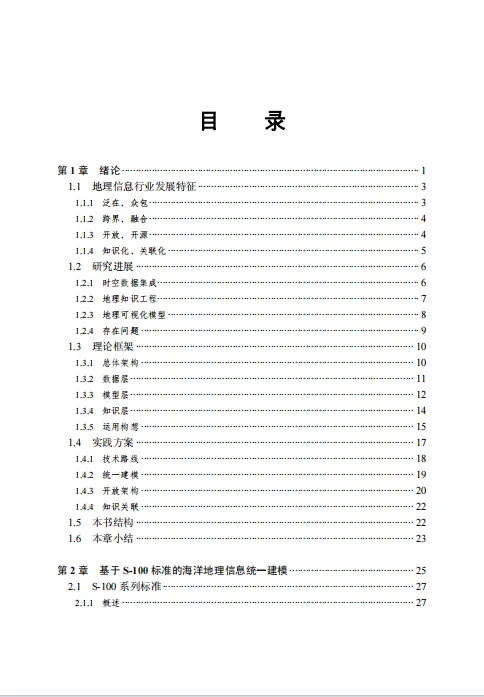 本书结合海洋环境领域的实际需求,与“数据-模型-知识”层次关系相对应,按照约束条件由强到弱,提出“数据标准统一、模型开源开放、知识动态互联”技术路线。按照此技术路线,分别围绕“基于S-100标准框架的海洋地理信息统一建模、基于开放架构的海洋地理信息服务与应用和基于关联模式的海洋地理信息知识表达、检索与推荐”三个方向,开展一系列技术方法研究与应用实践。