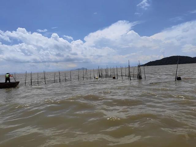7月18日,多个行政职能部门在红树林保护区开展联合巡查,拆除非法设置的“渔笼”。检察官来到现场共同参与并监督。