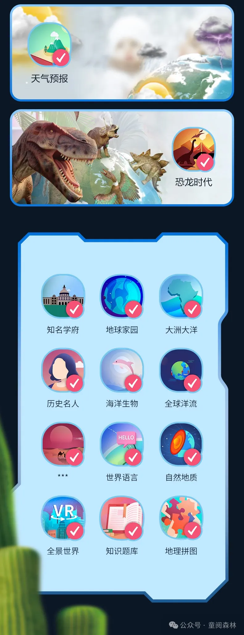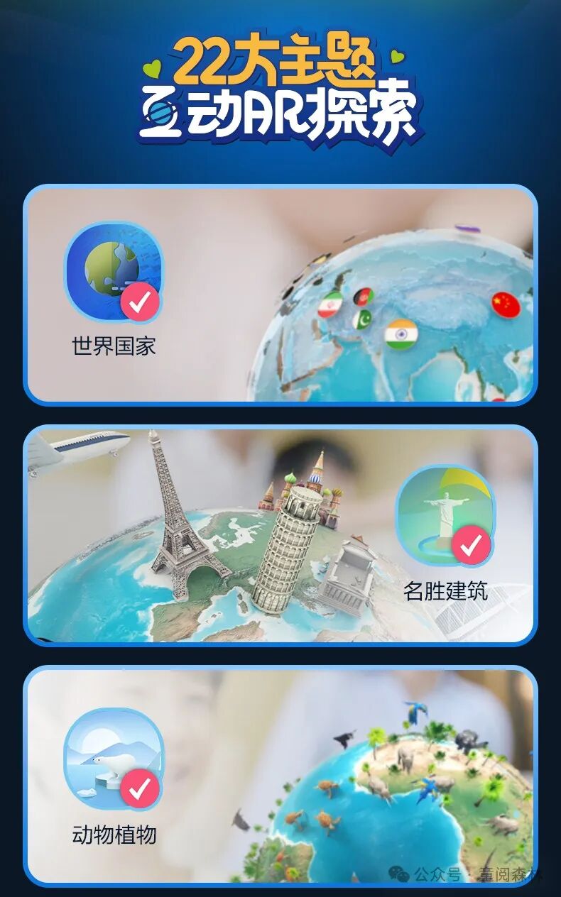4 i2 G+ t" w7 O9 C+ h* I- o 一、权威团队开发,3000多个知识点,涵盖全球220多个国家和地区,内容丰富,搭载AR,黑科技,拓展孩子知识眼界