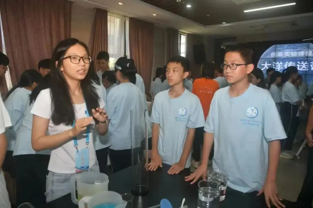 6 g; |) W* c5 t3 z& u, y, F: Q& ` 在主讲老师与助教的悉心指导下,学生们合作完成了两个实验:一是探究盐度与密度关系实验,二是研究温度与密度实验。在每个实验之前,主讲老师都会详尽地介绍实验的背景知识,激发营员的好奇心与探索欲;实验过程中,助教在一旁耐心解答疑问,确保每位同学都能准确操作。实验结束后,主讲老师不仅总结了实验结论,还进一步拓展了相关知识,将实验现象与科学原理紧密相连,帮助营员构建起完整的知识体系,深刻理解了实验所传达的科学内涵。