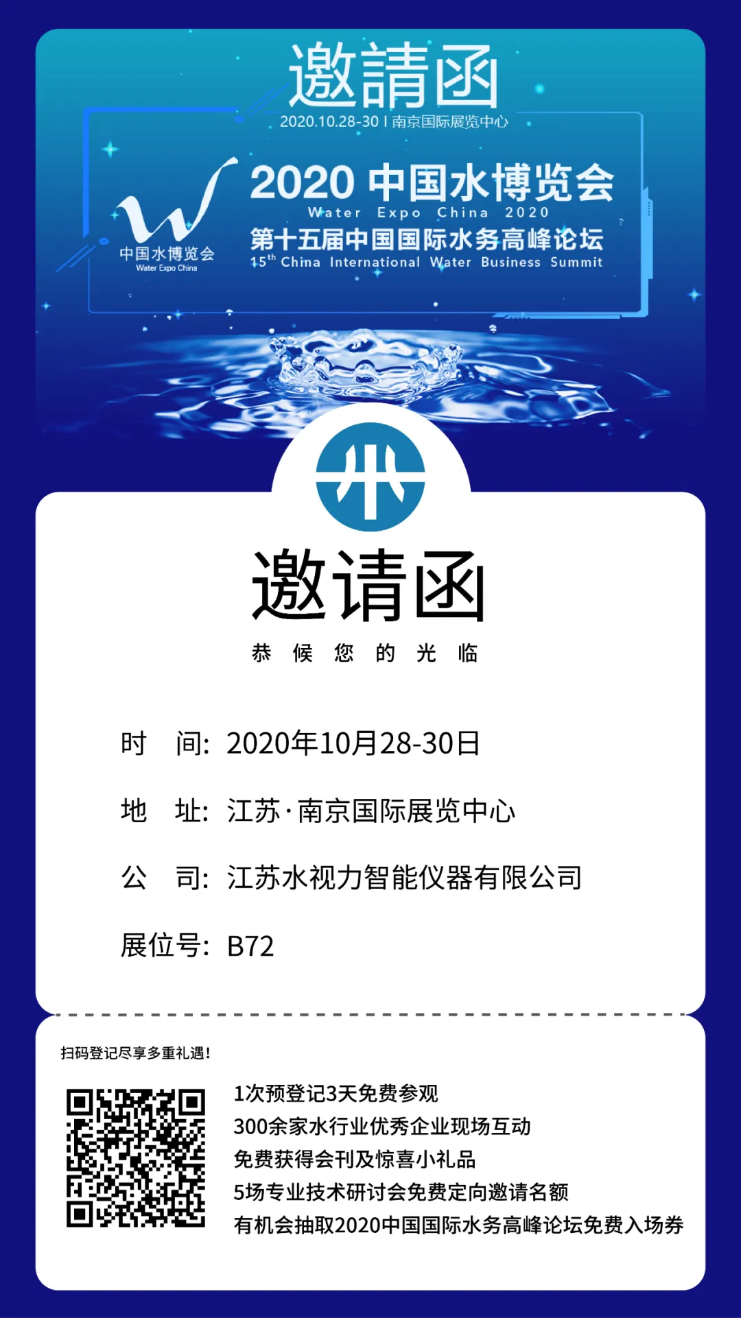 我司将于2020年10月28-30日在江苏·南京国际展览中心参加“2020中国水博览会暨第十五届中国国际水务高峰论坛”。