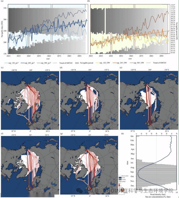 , T+ o1 p# i z* V; S& {. R 近日,上海海洋大学与北京大学的研究团队联合在Nature旗下期刊《Communications Earth & Environment》在线发表了题为“Ships are projected to navigate whole year-round along the North Sea route by 2100”的研究论文。该篇论文深入探讨了全球气候变暖背景下北极海冰融化对北极航道未来通航性的影响,预测了北极航道在本世纪末可能实现全年无冰状态,并分析了这一变化对全球航运网络和国际贸易格局的潜在重塑。 5 H r) J5 j% Q E2 _9 P
