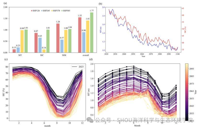 随着全球气候变暖,北极海冰急剧减少。研究团队运用第六次国际耦合模式比较计划(CMIP6)提供的气候模型数据,通过分析2023年至2100年间的不同排放情景,详细评估了北极海冰的厚度、密集度和漂移速度等影响航道可航性的关键因素。研究通过对模型表现的综合评价和筛选,减少了预测的不确定性,并结合了极地操作限制评估风险指数系统(POLARIS)来评估船舶在不同海冰条件下的航行风险。