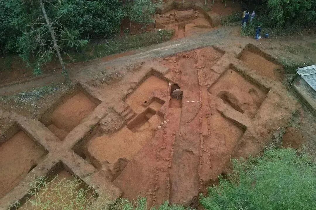 ; |: o3 ~; D0 Y. } 南朝“刀”字形砖室墓遗迹