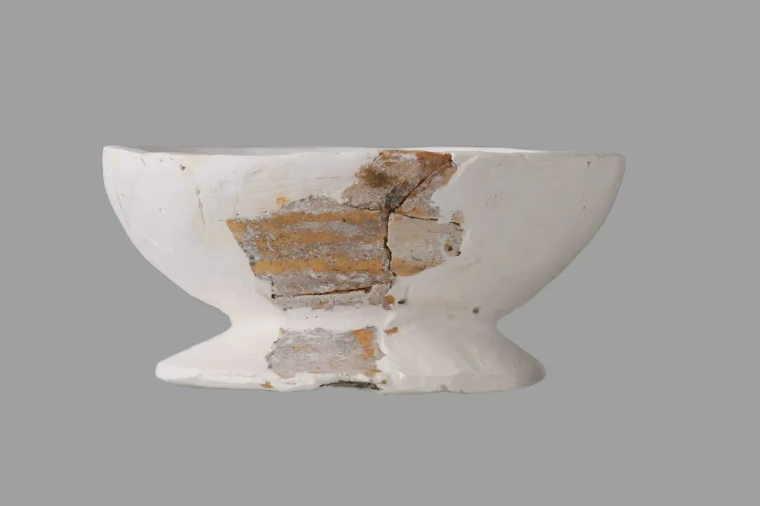 / D& Q# D& i, h) I( p& n 2021—2022年共采集、发掘出水文物标本1500余件套,器形主要为碗 ,其他包括盘、盏、洗、杯和香炉等。木质船体艏西北艉东南,约310°,残长13.07米,最宽处3.7米。水下考古发掘显示,遗址第一层为沙石混合层,包含有扰动过的瓷片和完整瓷器,厚度为5~25厘米;第二层为灰色细泥层,厚度为10~40厘米,这一层有成摞的瓷器堆积,每摞瓷器由竹片包裹间隔,这一层为原生堆积,其下即为船底板。 9 Q0 g+ @0 ]$ e* c0 }) N" ?