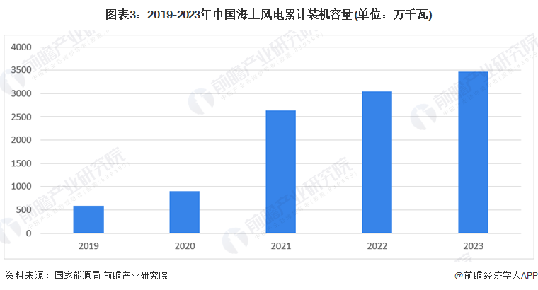 3、海上风电:累计装机容量持续攀升 " I- S: h2 Y0 m' I8 q6 }& a9 x% B9 x